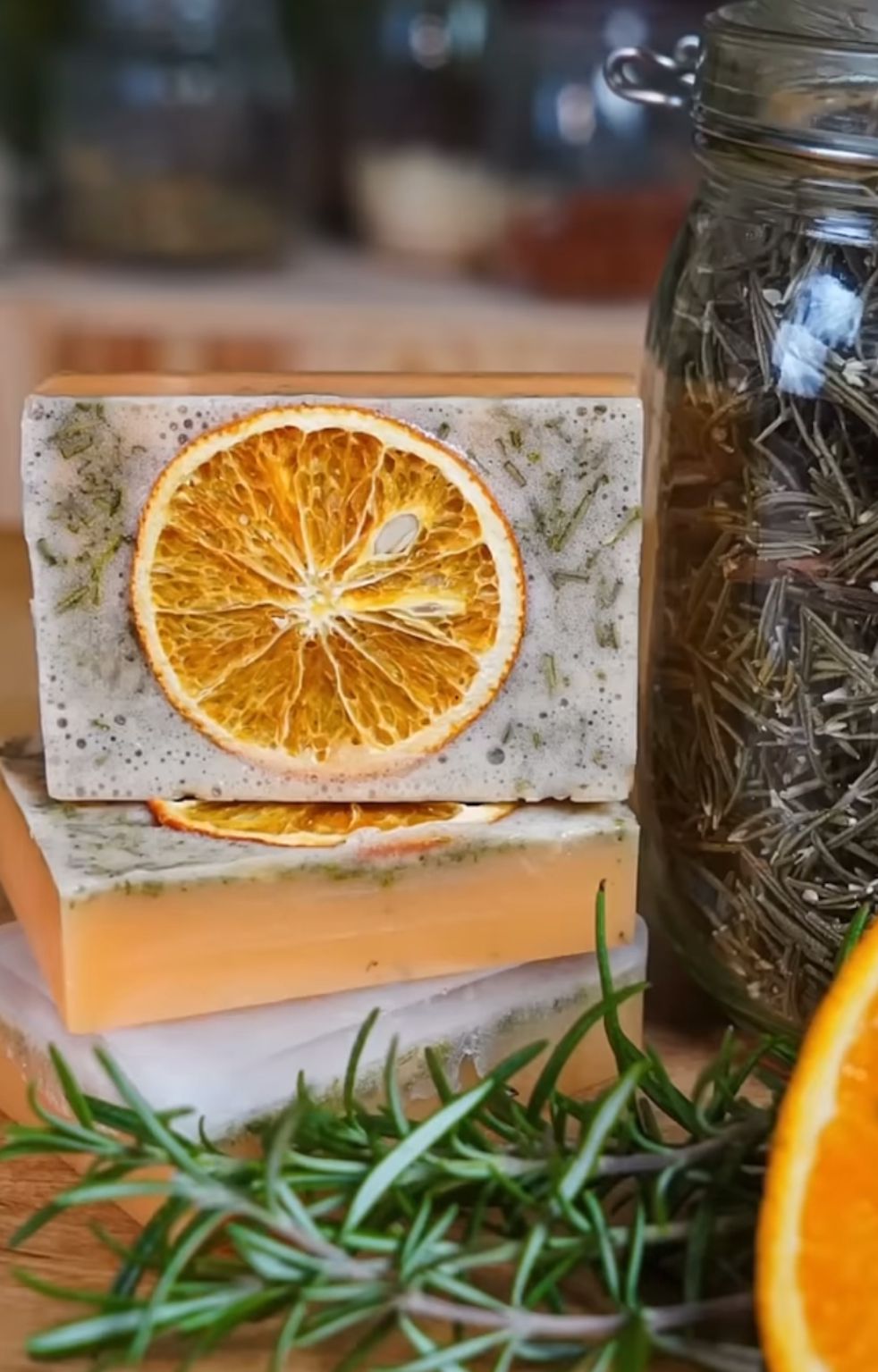 Sabonete revitalizante com laranja fresca, alecrim aromático e argila laranja, combinando a energia cítrica com as propriedades tonificantes do alecrim para uma limpeza que desperta os sentidos.